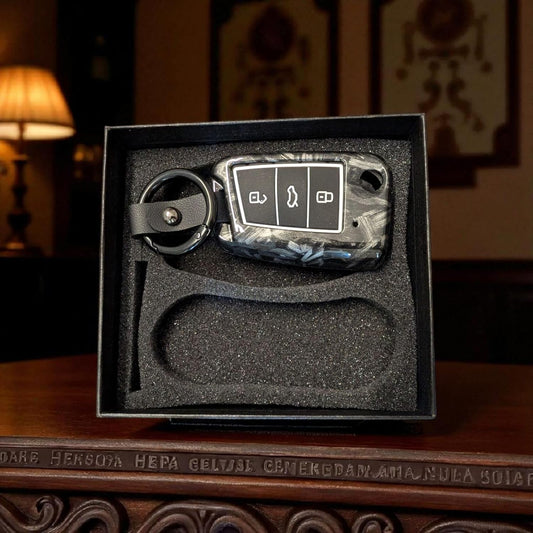 YOURKARTS.COM Car Key Cover ABS Carbon Case Anti-Break Key Shell Compatible with Volkswagen Polo Vento Jetta Ameo Passat and Skoda Rapid Laura Superb Octavia Fabia Yeti Folding Key(Pack of 1)