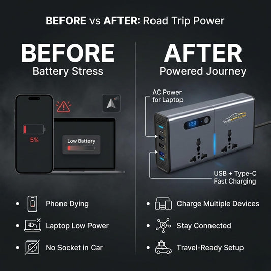 200W Car Power Inverter 12V to 220V with 3 USB Ports, Type-C Fast Charging & LCD Display