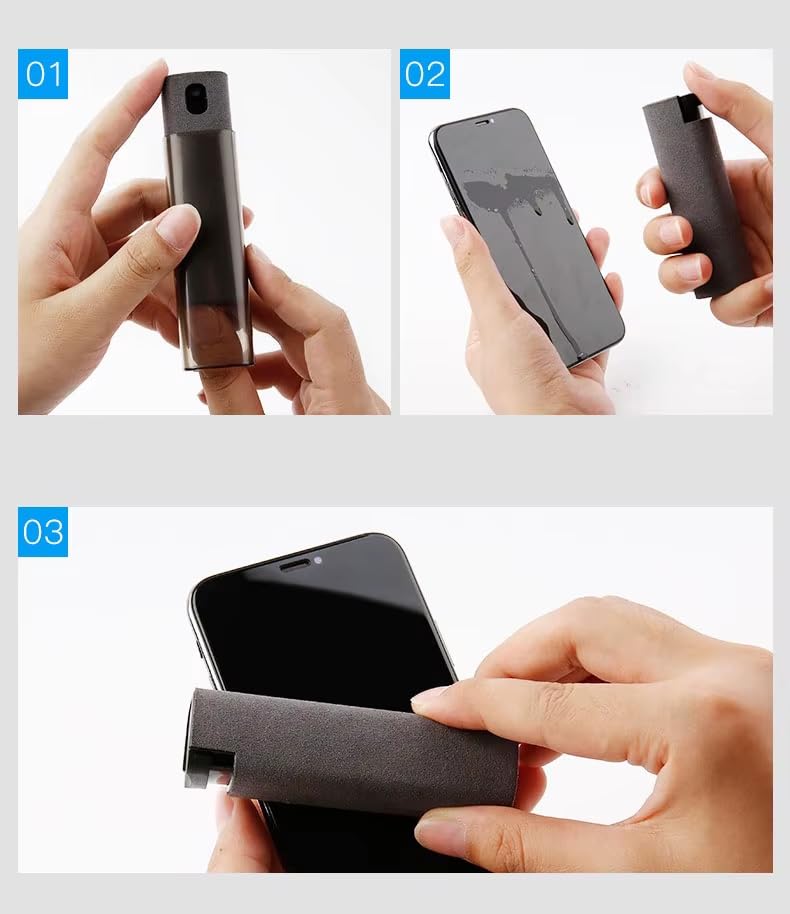 2-in-1 Cleaning Spray + Microfiber Wipe: Compact spray bottle with a soft microfiber wiping surface built into the shell—perfect for quick and streak-free cleaning of screens.