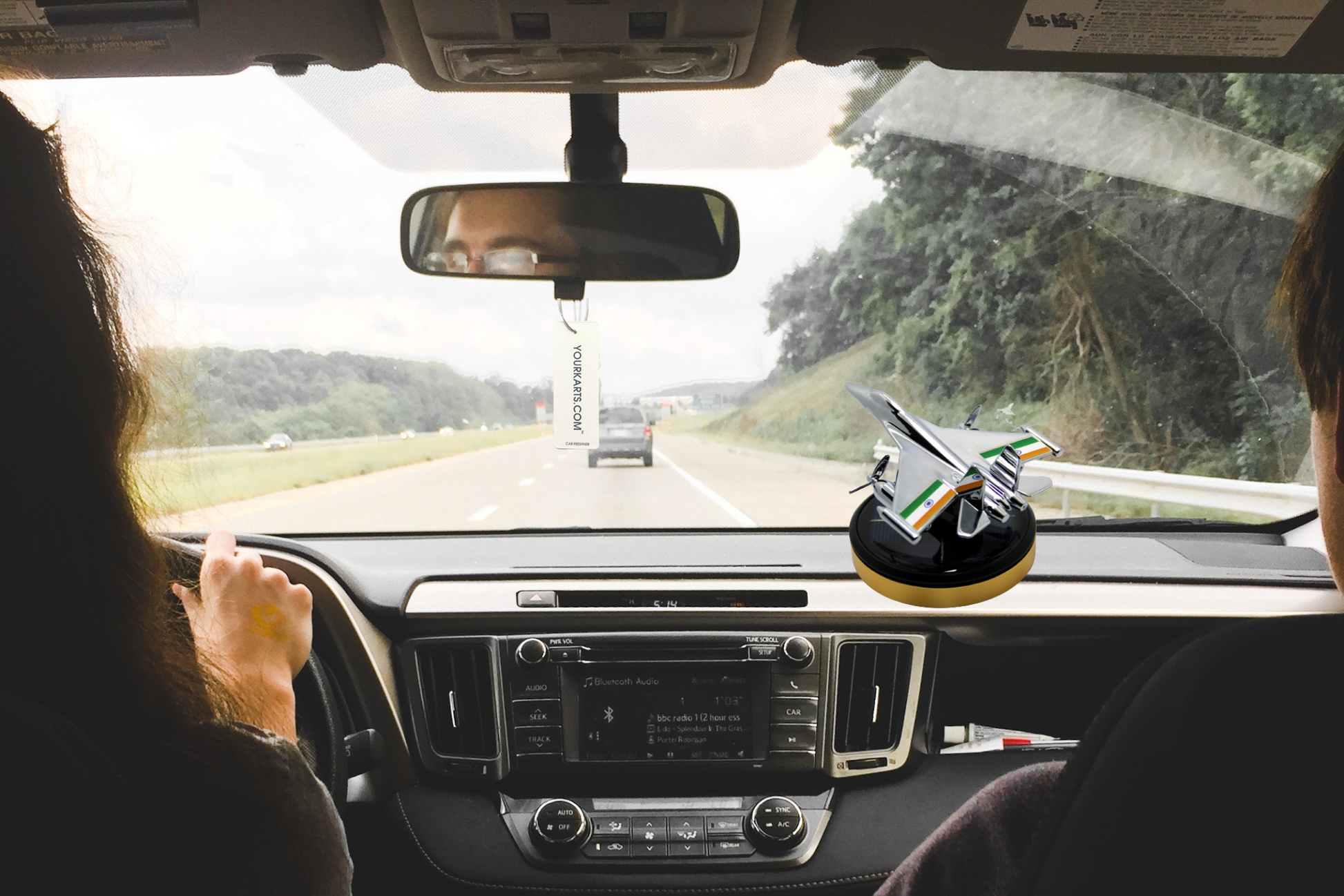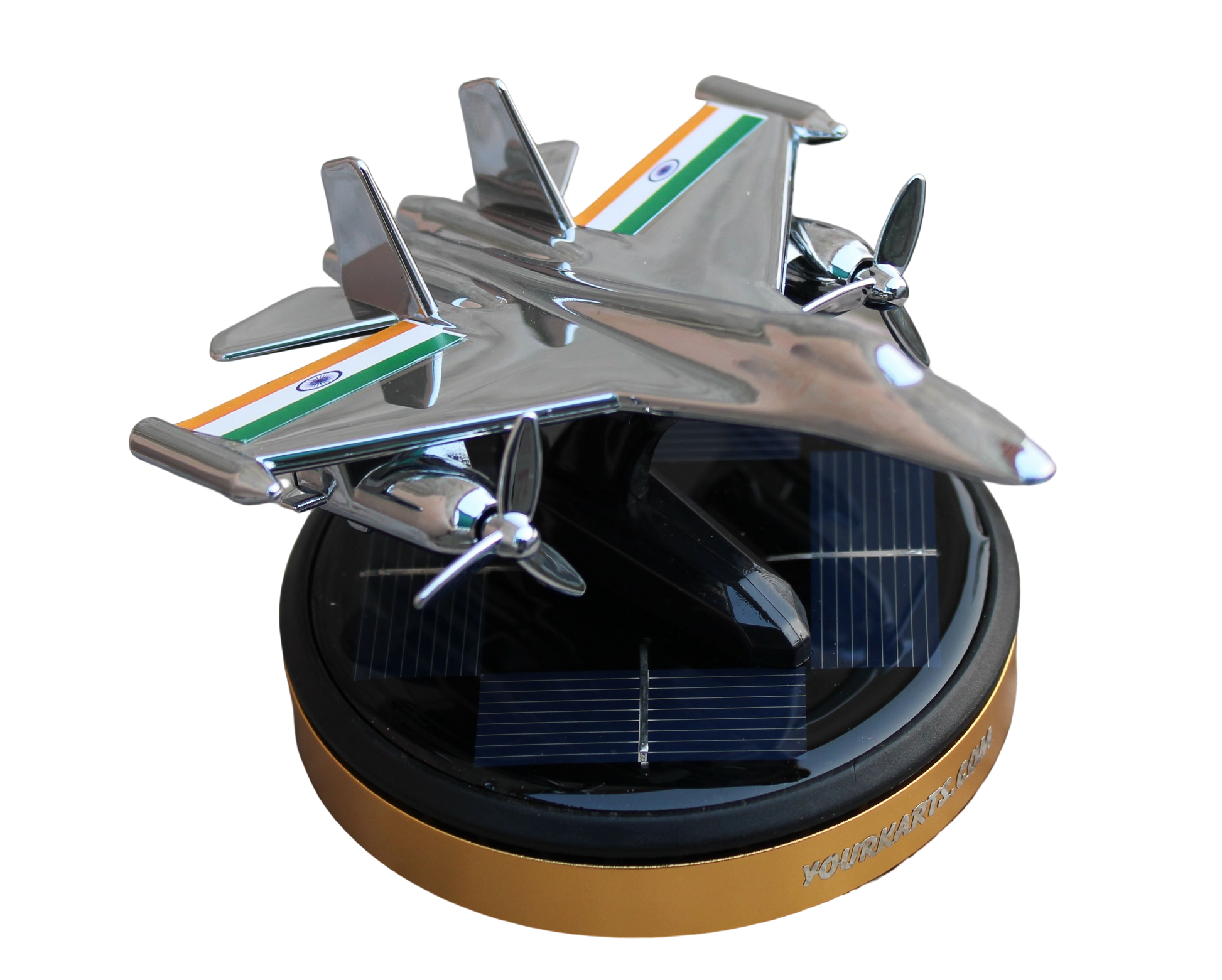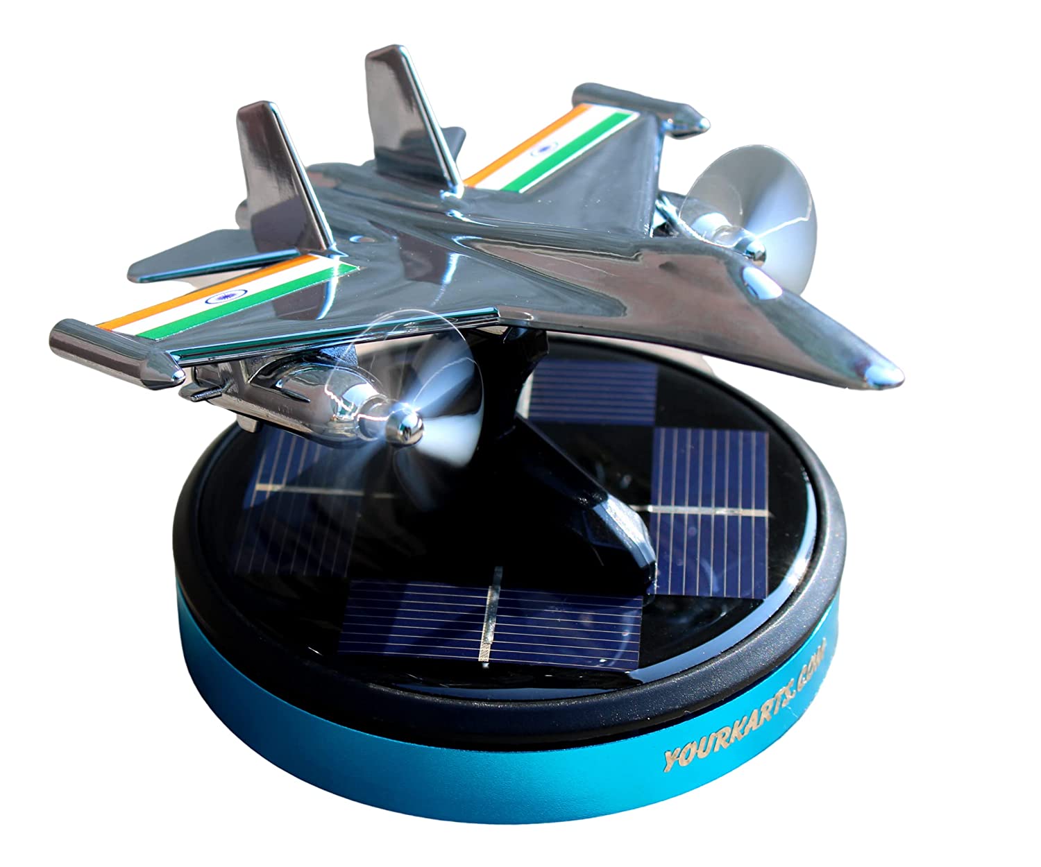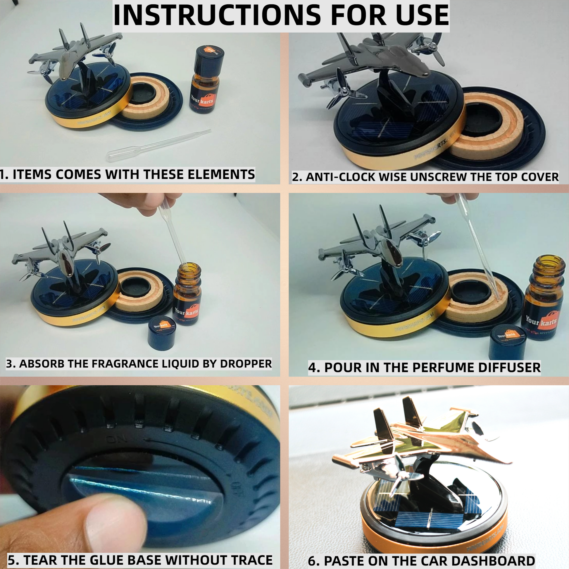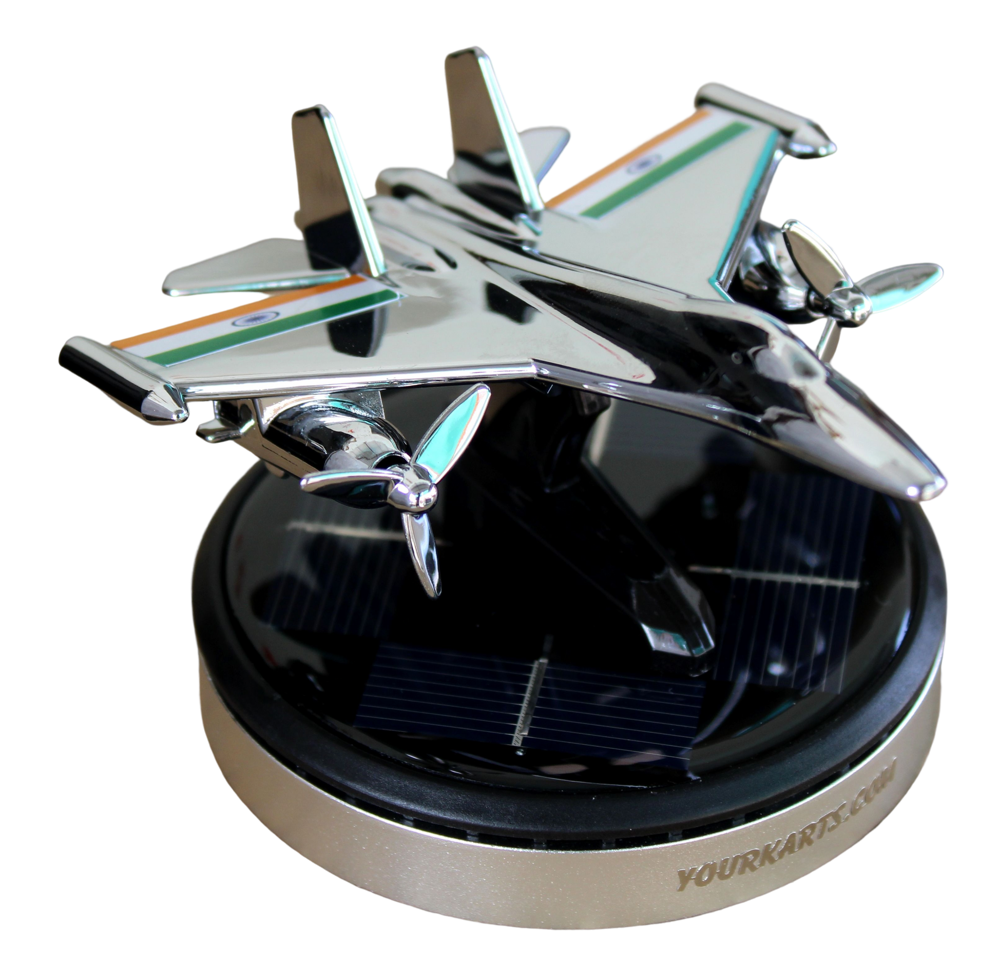 - These elegant perfumes comes in spectacular shape of jet which will add beauty to your car dashboard.As soon as the sunlight falls on its solar panel which are on its wings the propeller keeps rotating with a nose free backgroud.