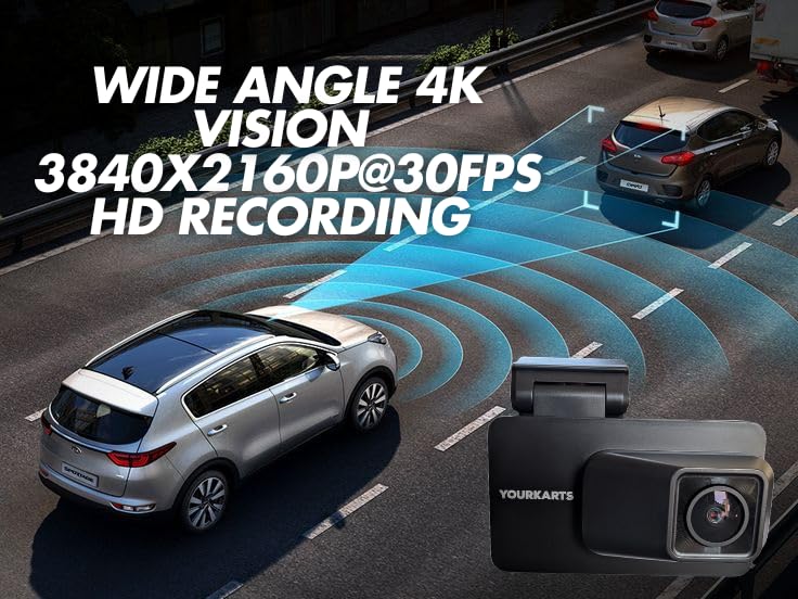 YOURKARTS.COM M18 4K Front 4MP REAR2MP with 3" Screen, ADAS, BSD, GPS Logger, WiFi, Night Vision, Rear Camera, Loop Recording, WDR, G-Sensor, 256GB Support – 18-Month Warranty