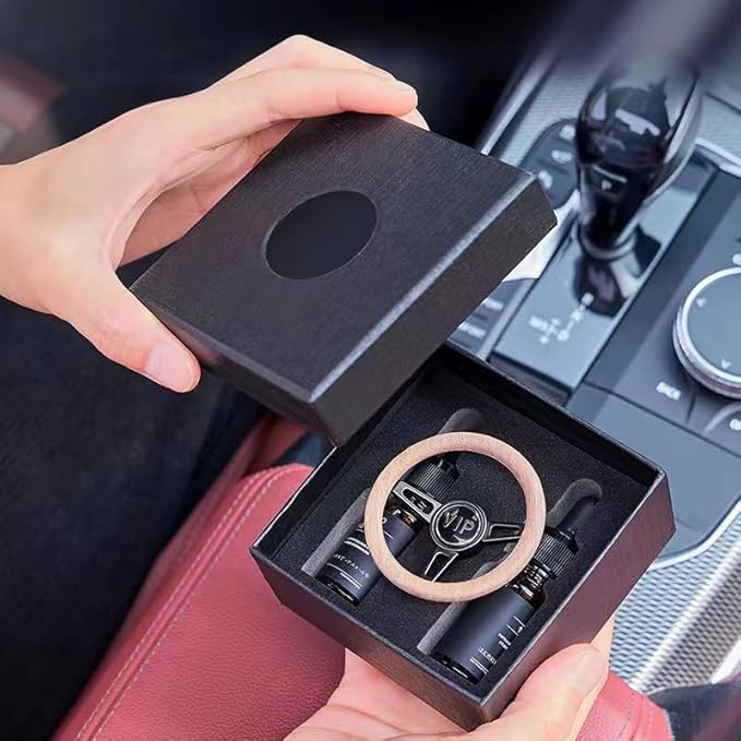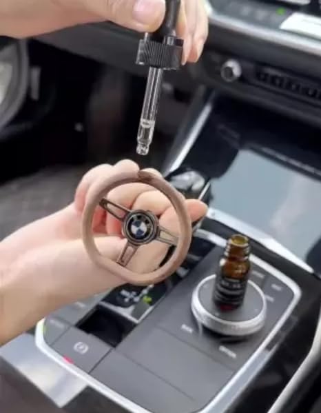 YOURKARTS AC Vent Car Air Freshener Set, Wood and Leather Scent, with Vent Clip, Steering Wheel Design