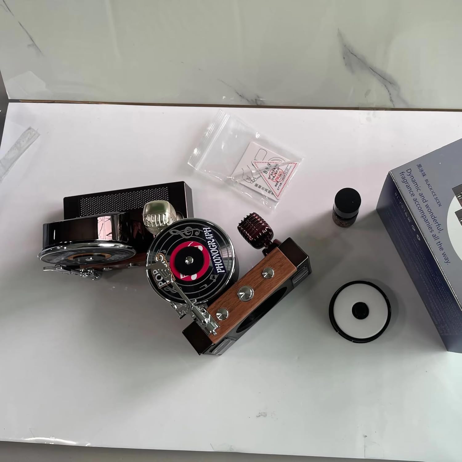 YOURKARTS.COM Solar Rotating Phonograph Car Perfume Retro Style Aromatherapy Dashboard Decoration, Auto Diffuser for Long-Lasting Freshness | car Accessories 2025 (Solar Gramophone, Rich Cologne)