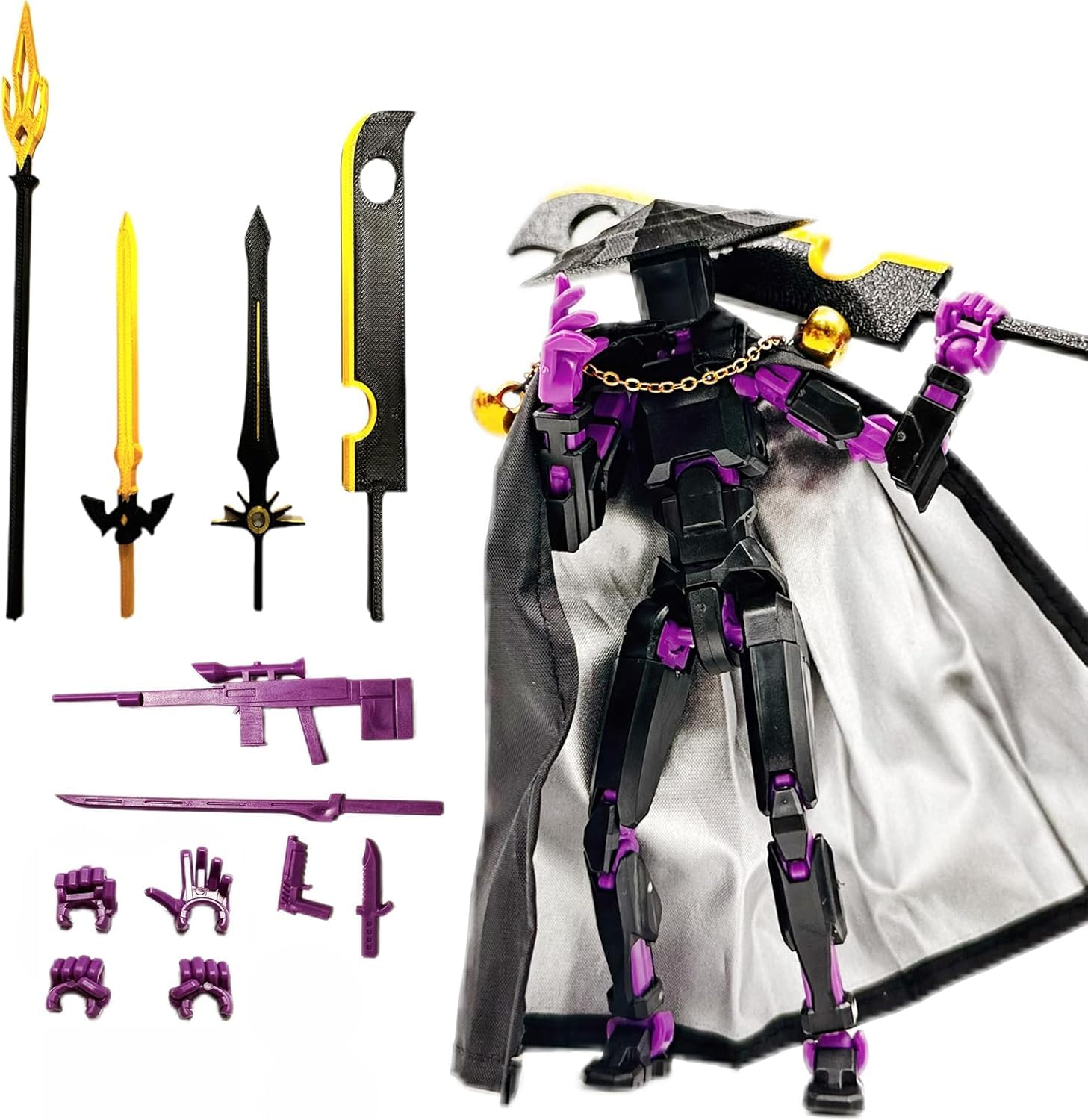 YOURKARTS.COM 3D Printed LED Action Figure, Moving Robot Toy for Kids and Adults, Multi-LED Display (Purple Hat)
