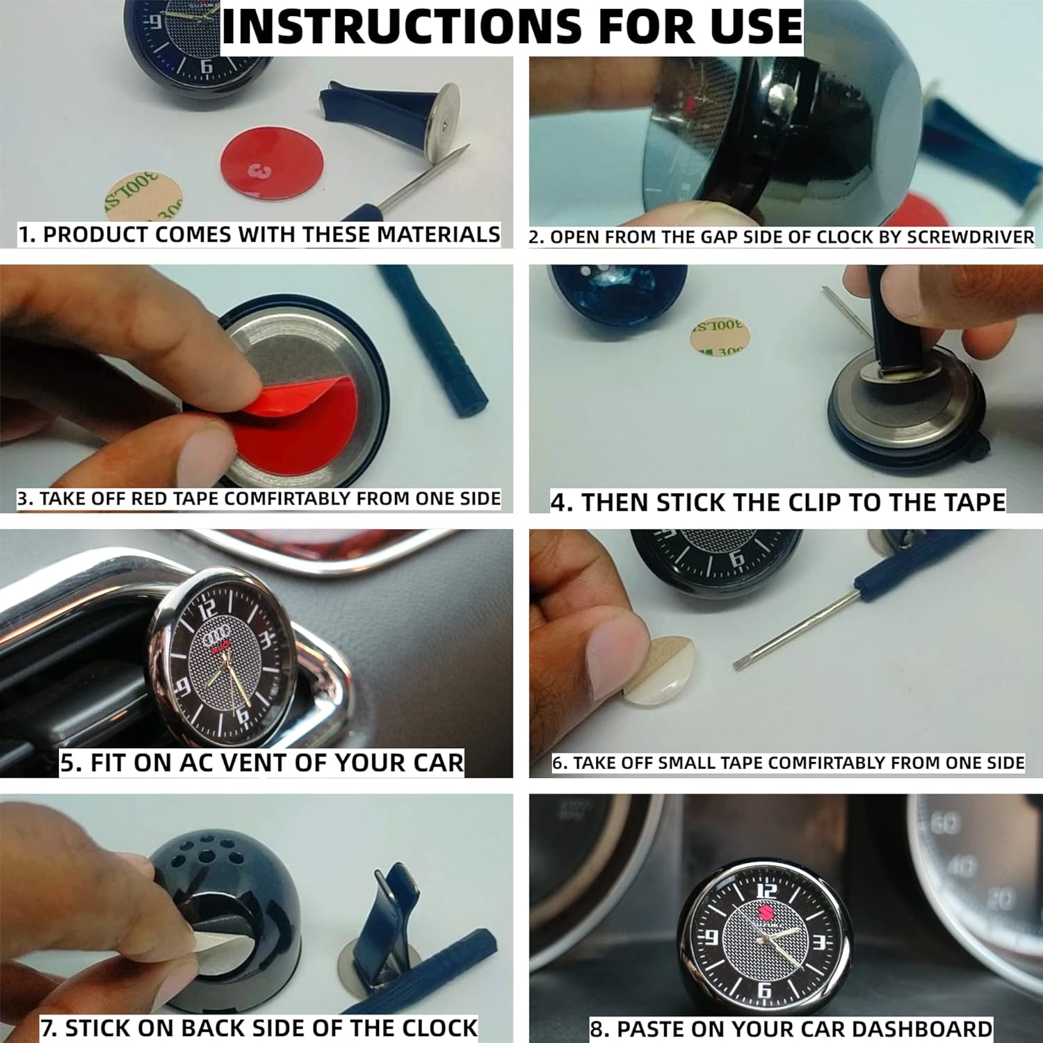 YOURKARTS.COM Car Dashboard Universal Analog Clock with Ac Vent Clip 3M Tape Perfect Size