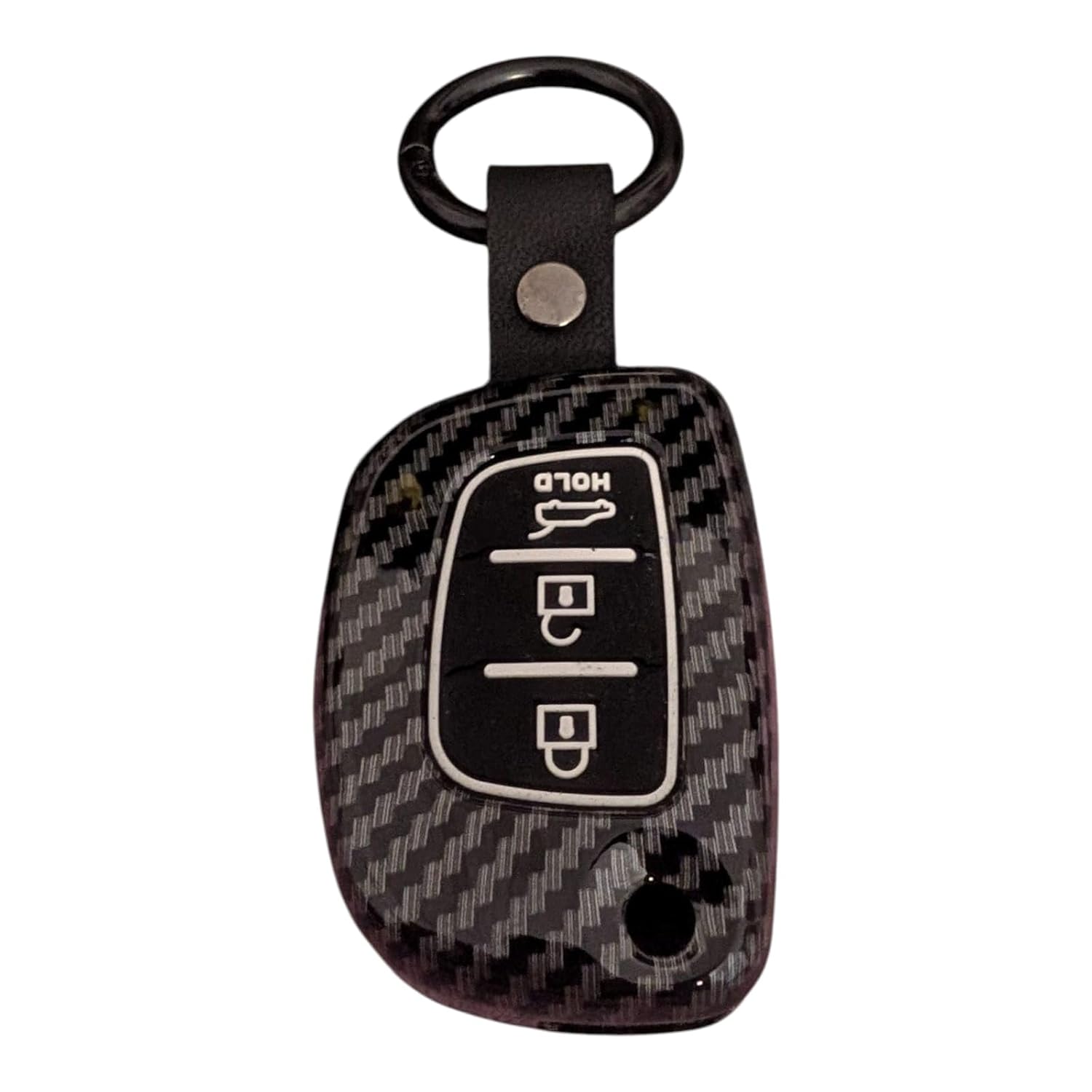 YOURKARTS.COM Car Key Cover Premium Carbon A+ Design – Compatible with Hyundai Grand i10 NIOS, Venue, i20, Aura, Creta 3 Button Smart Key Cover with Keychain Flip Key Shell (Carbon Strip)