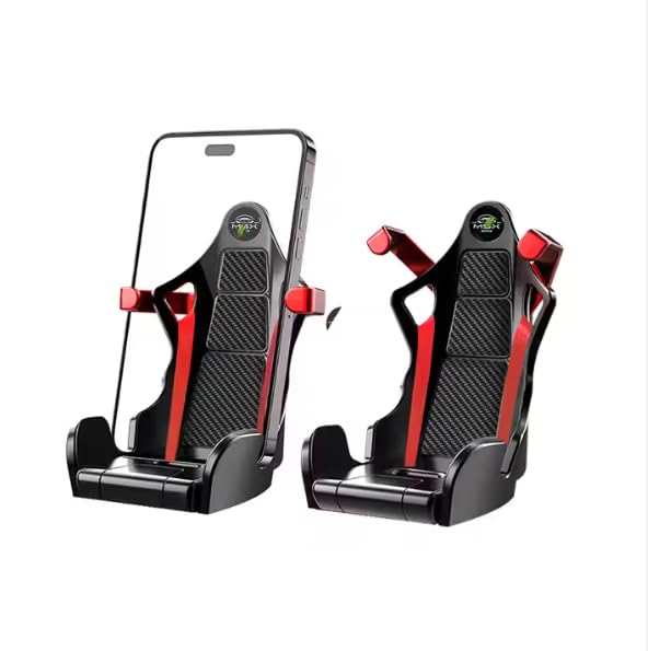YOURKARTS.COM Car Phone Holder Mount, Racing Seat Design with Carbon Fiber Pattern, Air Vent Clip, Adjustable Grip, Red and Black