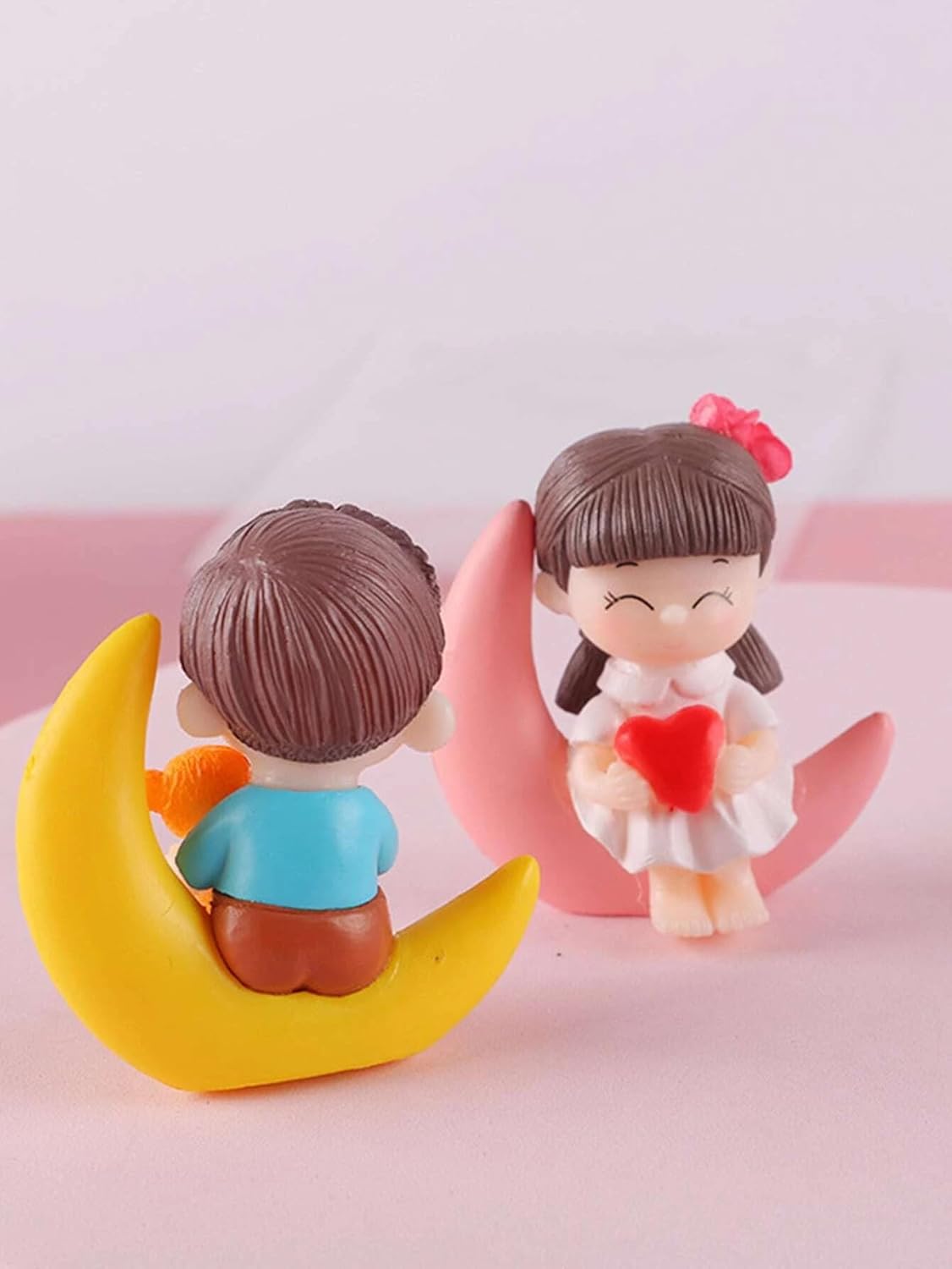YOURKARTS.COM Decorative Couple Figurines, Garden Sculpture Set of 2, Wedding Gift, Home Decor (Couple on Moon)
